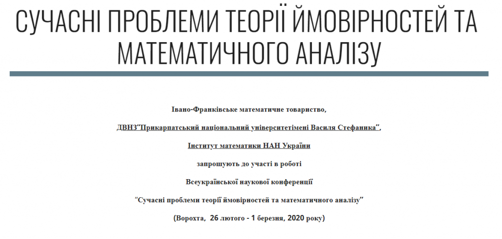 Всеукраїнська наукова конференція “Сучасні проблеми теорії ймовірностей та математичного аналізу” проводиться щорічно починаючи з 2010 року. Основною метою конференції є популяризація досліджень в галузі математичного аналізу, теорії ймовірностей та математичній статистиці, надання науковцям майданчика для обговорення одержаних результатів. Крім того, Читати далі
